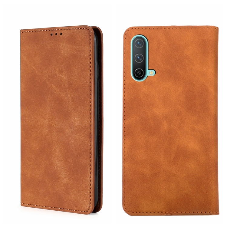 Funda OnePlus Nord Ce 5G Skin Feel Flip Horizontal Magnética de Cuero (Marrón Claro)