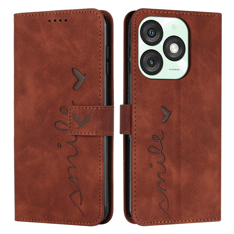 Funda de Piel con Relieve de Corazón y Cordón Largo para Teléfono Itel A80 (Marrón)