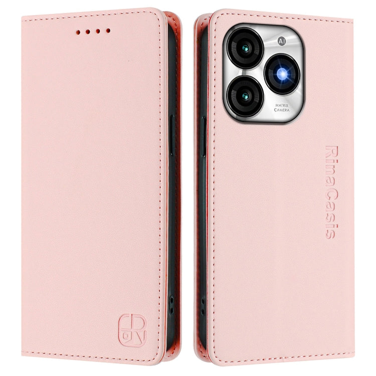 Funda de Cuero Rfid para Teléfono Itel A05S Rc01 con Doble Pliegue y Succión Magnética (Rosa)