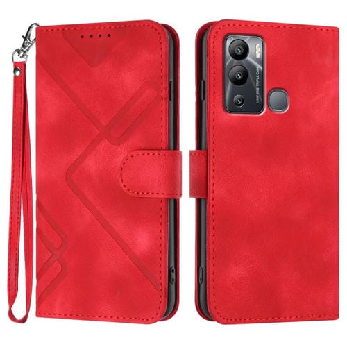 Funda de Cuero para Infinix Hot 12I con Diseño de Líneas y Tacto Suave (Rojo)
