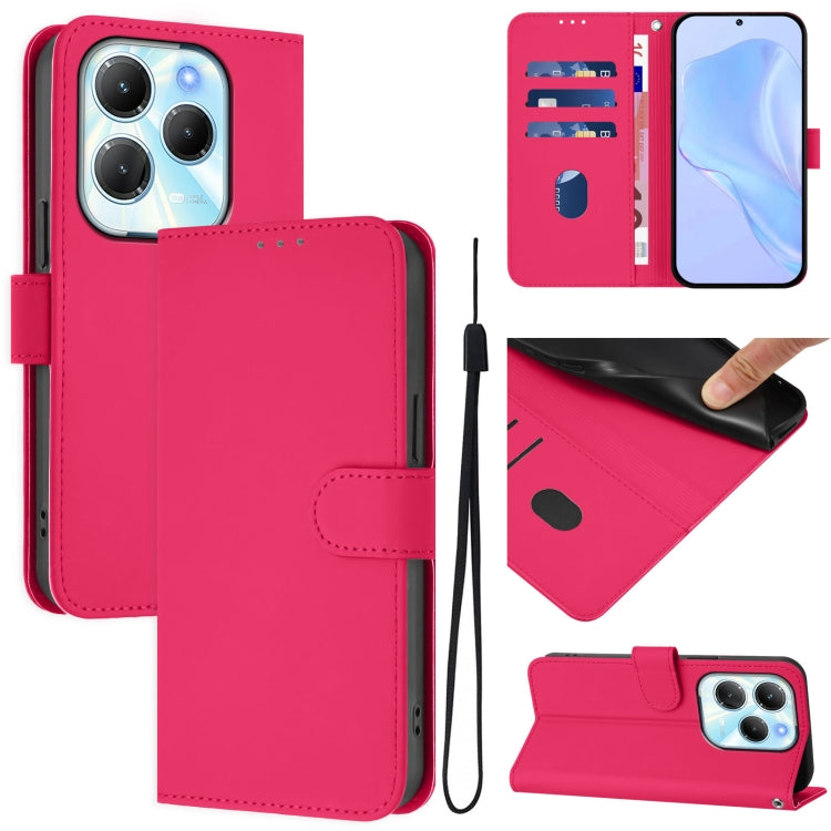Funda de Piel Sintética con Cordón para Teléfono Infinix Hot 50 4G (Rosa y Rojo)