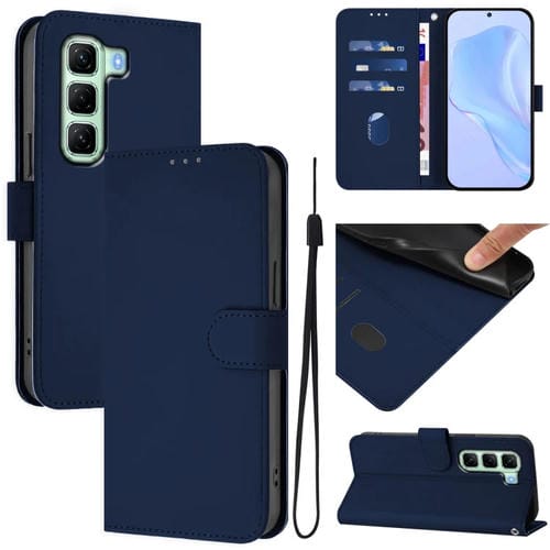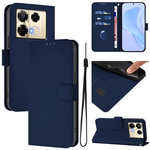 Funda de Cuero con Cordón para Teléfono Infinix Note 30 Vip Skin Feel (Azul Marino)