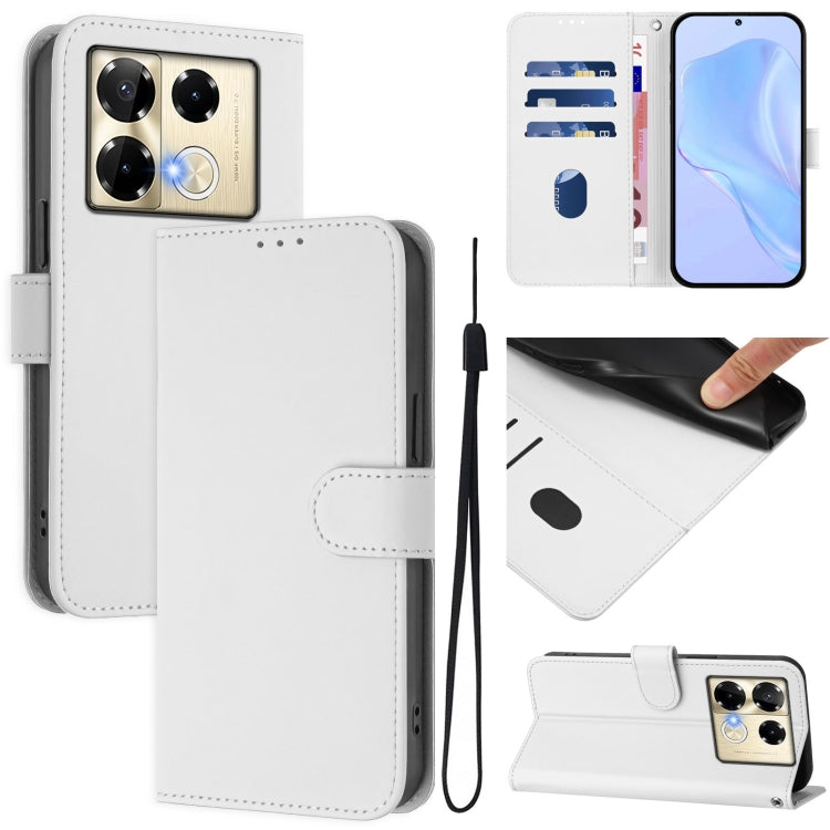Funda de Cuero con Cordón para Teléfono Infinix Note 40 5G con Tacto de Piel (Blanco)