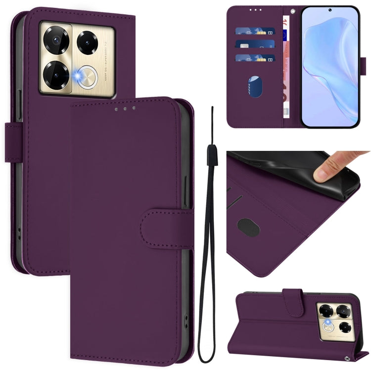 Funda de Cuero Textura Piel para Infinix Note 40 Pro 4G con Cordón (Violeta)
