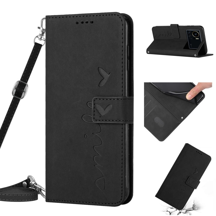 Funda de Cuero para Infinix Note 12 Vip Skin Feel con Cordón y Patrón Corazón (Negro)