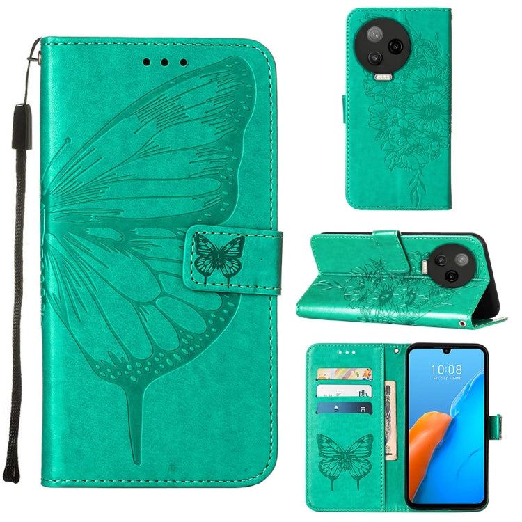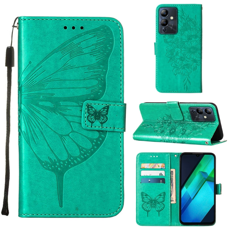 Funda de Cuero para Infinix Hot 12 X6817 con Tapa de Mariposa en Relieve (Verde)
