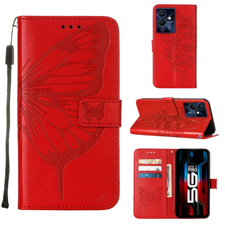 Estuche para Infinix Note 12 Pro 5G de Cuero con Tapa de Mariposa en Relieve (Rojo)