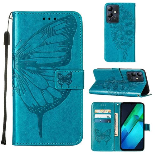 Funda de Cuero para Infinix Hot 12 X6817 con Tapa de Mariposa en Relieve (Azul)