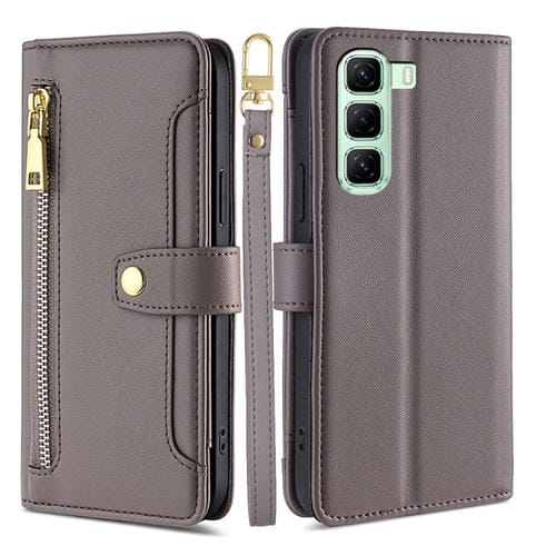 Funda de Cuero con Cremallera y Diseño de Oveja para Infinix Hot 50 5G (Gris)