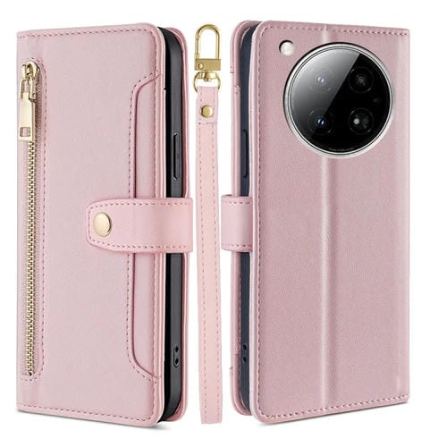 Funda de Cuero con Cremallera y Textura de Oveja para Infinix Zero 40 4G (Rosa)