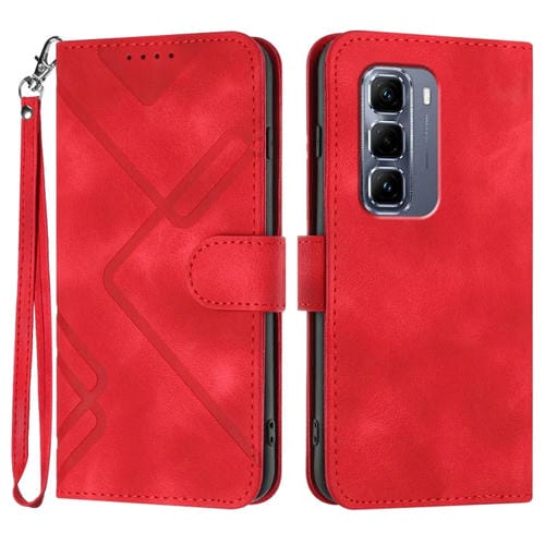 Funda de Cuero para Infinix Hot 50 Pro+ 4G con Diseño de Líneas y Tacto Suave (Rojo)