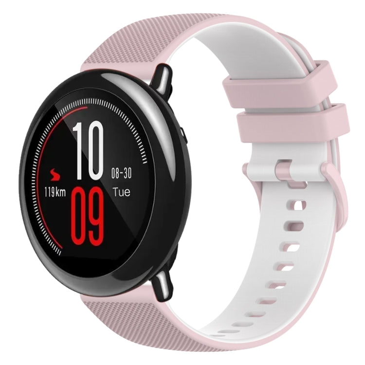 Correa de Reloj Amazfit 2 Stratos 22mm Silicona Dos Colores a Cuadros (Rosa + Blanco)