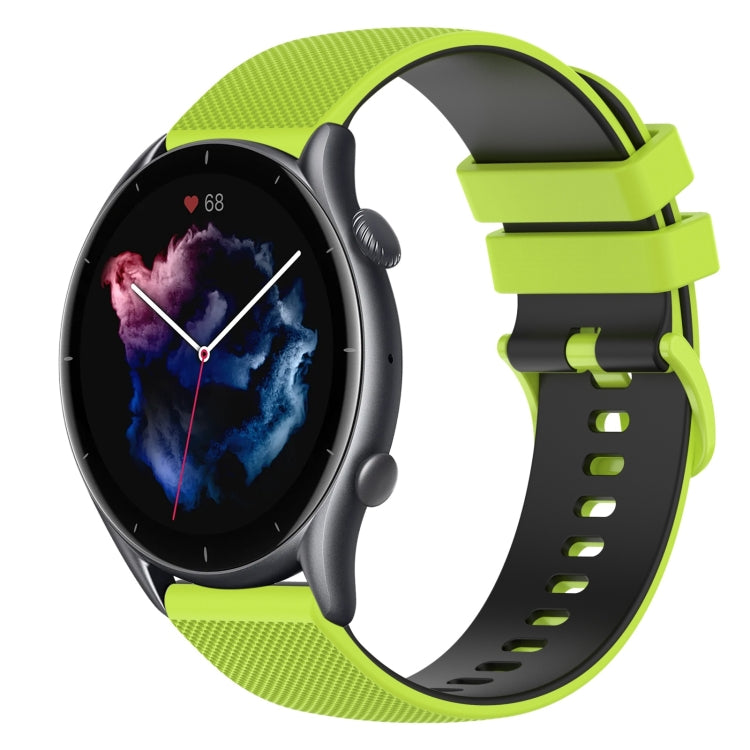 Correa de Silicona para Amazfit GTR 3 22mm Dos Colores a Cuadros (Verde Lima + Negro)