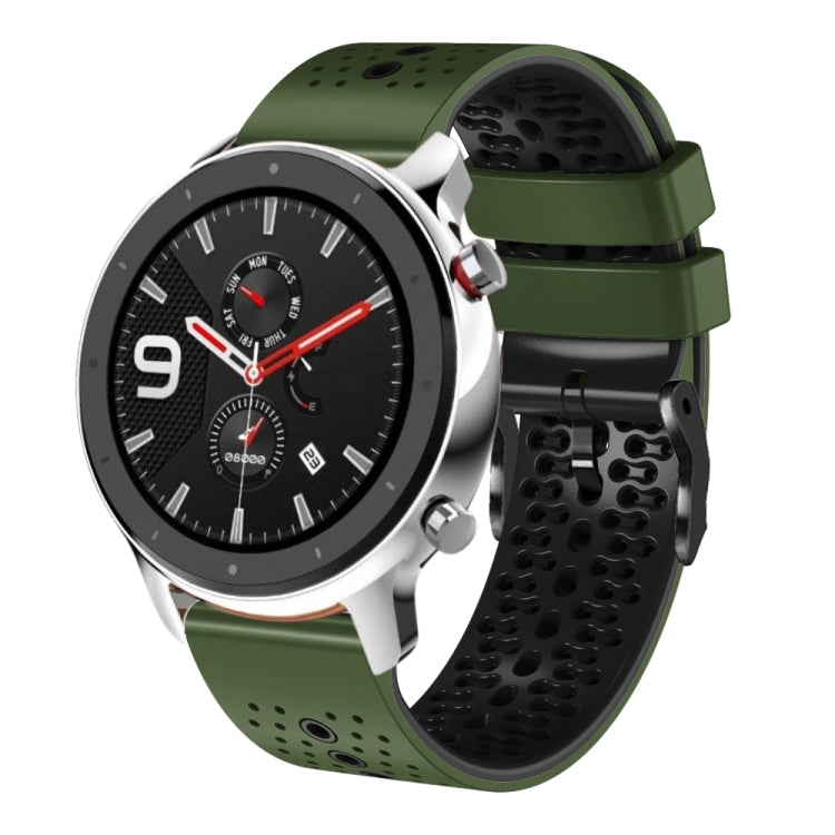 Correa de Silicona para Amazfit GTR 4 22mm Bicolor Perforada (Verde Militar + Negro)