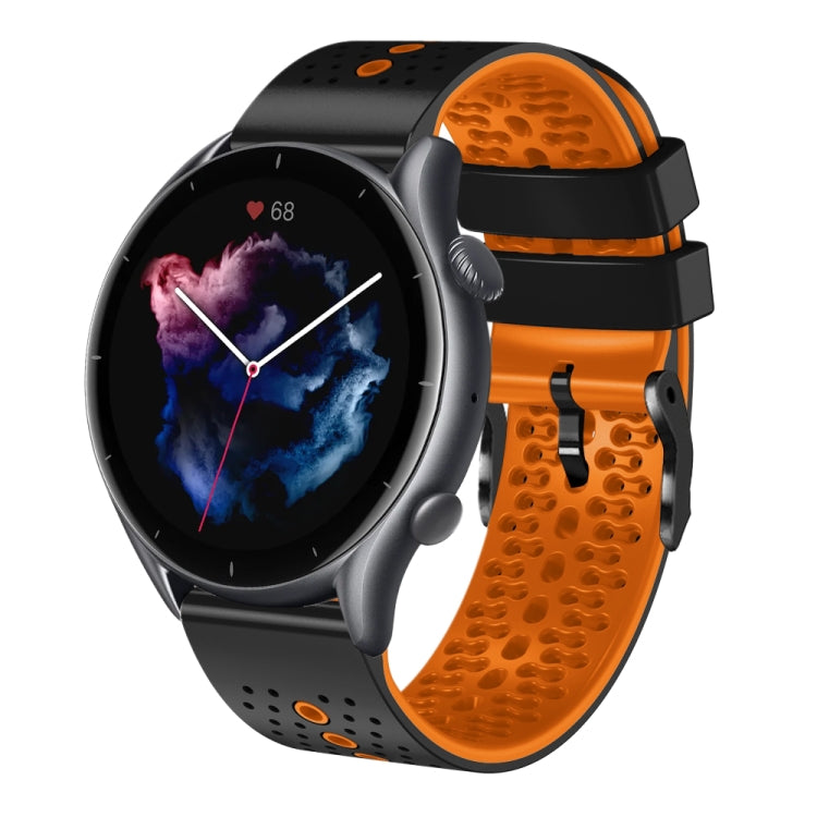 Correa de Reloj para Amazfit GTR 3 22mm Silicona Bicolor Perforada (Negro + Naranja)