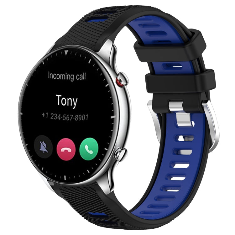 Correa para Amazfit GTR 2 22mm Textura Cruzada Silicona Hebilla Acero (Negro + Azul)