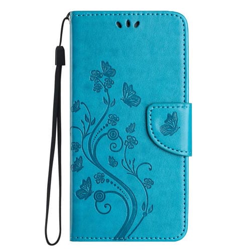 Funda de cuero con tapa y diseño de mariposas y flores para iPhone 17 (azul)