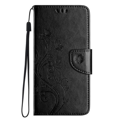 Funda de cuero con tapa y diseño de mariposas y flores para iPhone 17 (negra)