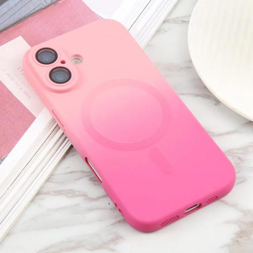 Funda de silicona líquida TPU con degradado MagSafe para iPhone 17 (rosa y rojo)