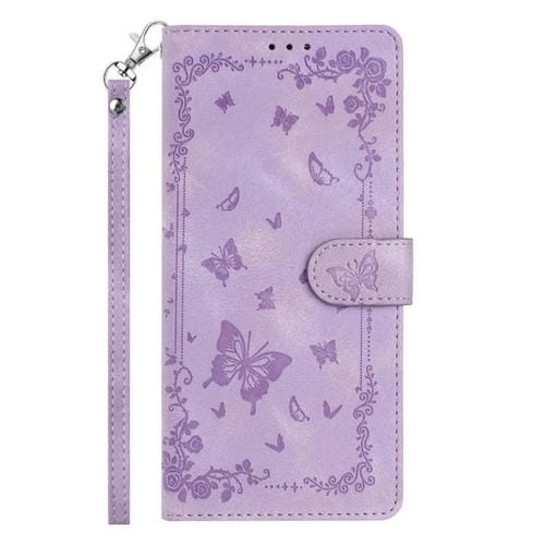 Funda de PU con doble hebilla y estampado de mariposa para iPhone 17 (morada)