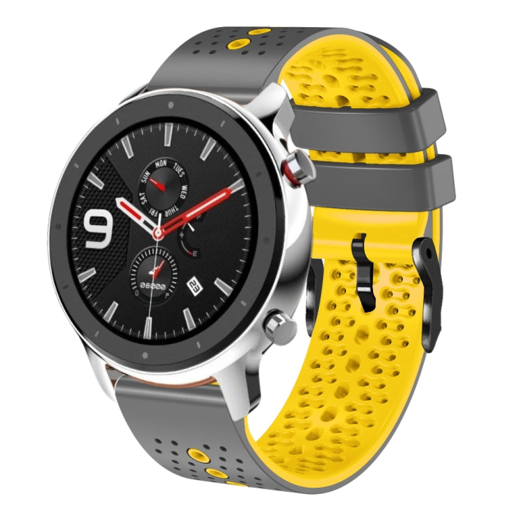 Correa de Reloj Amazfit GTR 3 Pro 22mm Silicona Bicolor Perforada (Gris + Amarillo)