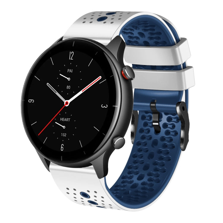Correa de Reloj Amazfit GTR 2E 22mm Silicona Bicolor Perforada (Blanco + Azul)