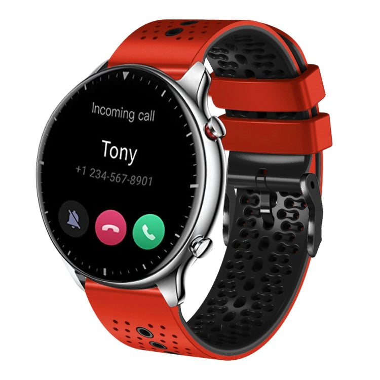 Correa de Reloj para Amazfit GTR 2E 22mm Silicona Bicolor Perforada (Rojo + Negro)
