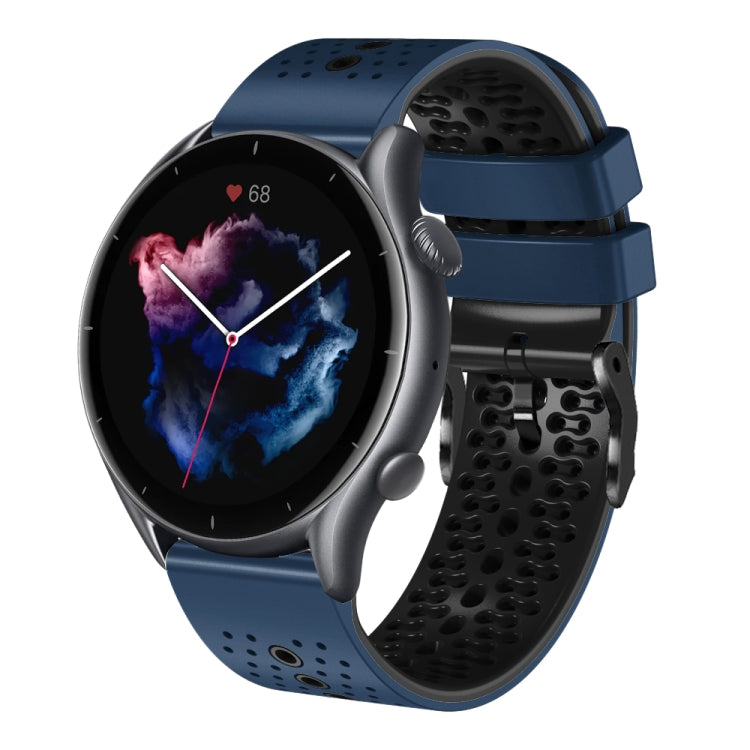 Correa de Silicona Bicolor Perforada para Amazfit 3 22mm (Azul Medianoche + Negro)