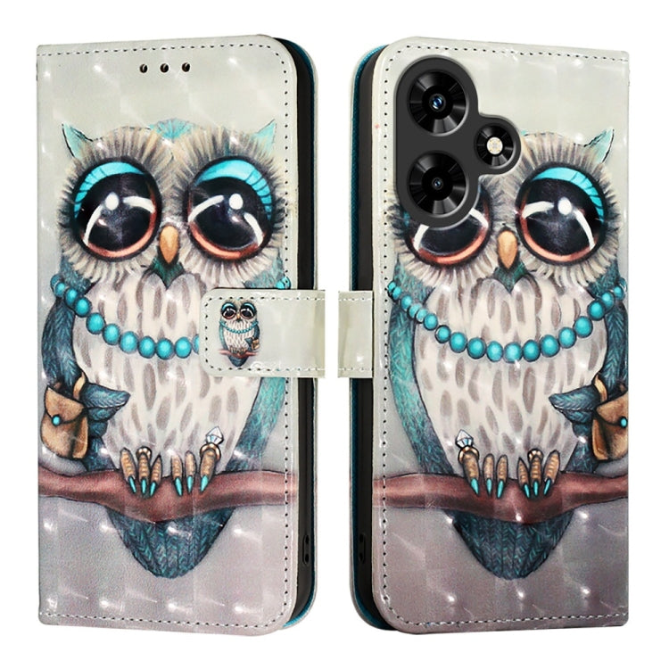 Funda de Cuero para Infinix Hot 30 4G con Tapa Horizontal y Pintura 3D (Búho Gris)