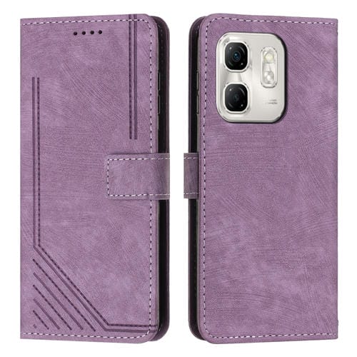 Funda de Cuero para Infinix Hot 50I con Diseño de Rayas y Cordón (Morado)