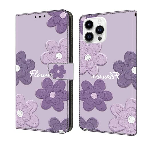 Funda de Cuero Pintada a Mano para iPhone 16 Pro Max con Flores (Morado Oscuro)