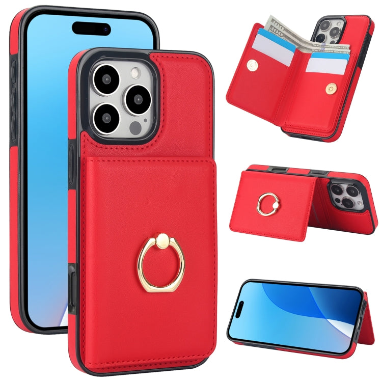 Funda para Teléfono con Anillo para Tarjeta Antirrobo Rfid iPhone 16 Pro (Rojo)