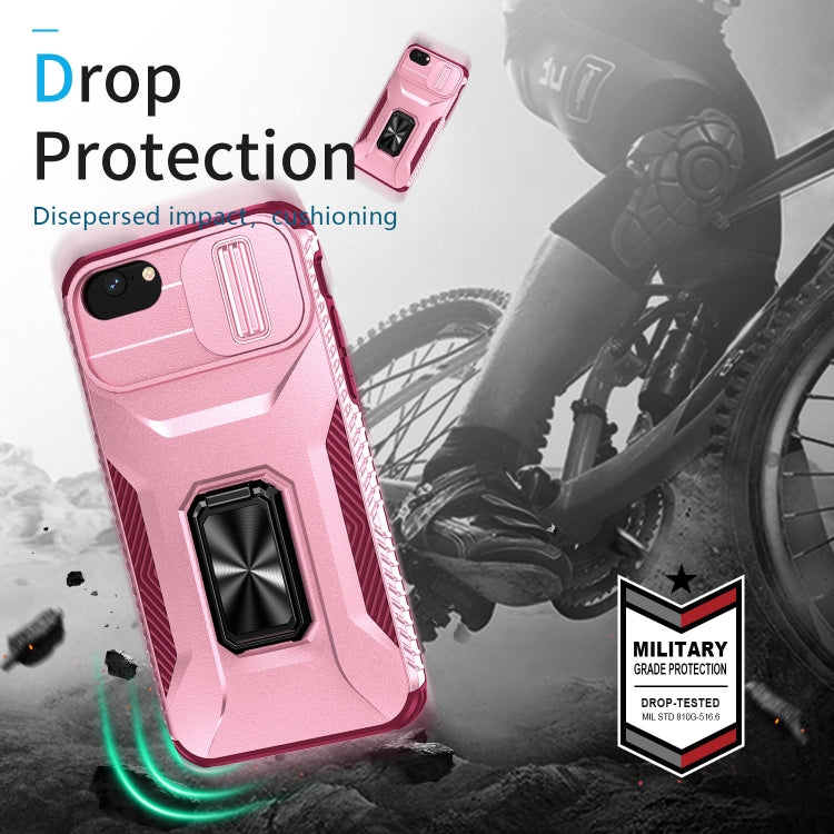 Estuche para Teléfono iPhone 7 con Soporte Deslizante para Levas (Rosa + Rojo Rosa)