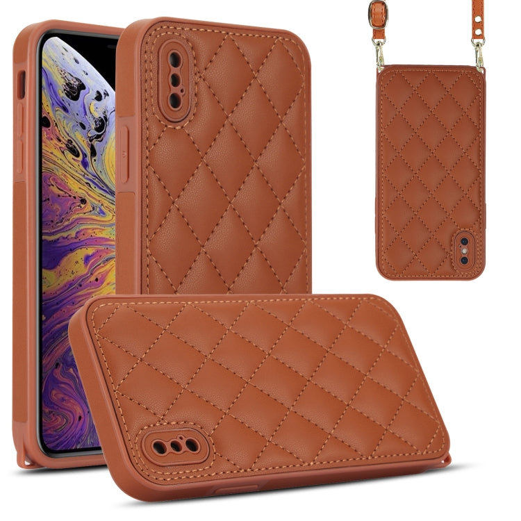 Estuche para Teléfono iPhone Xs / X Textura Rómbica Cordón Doble (Marrón)