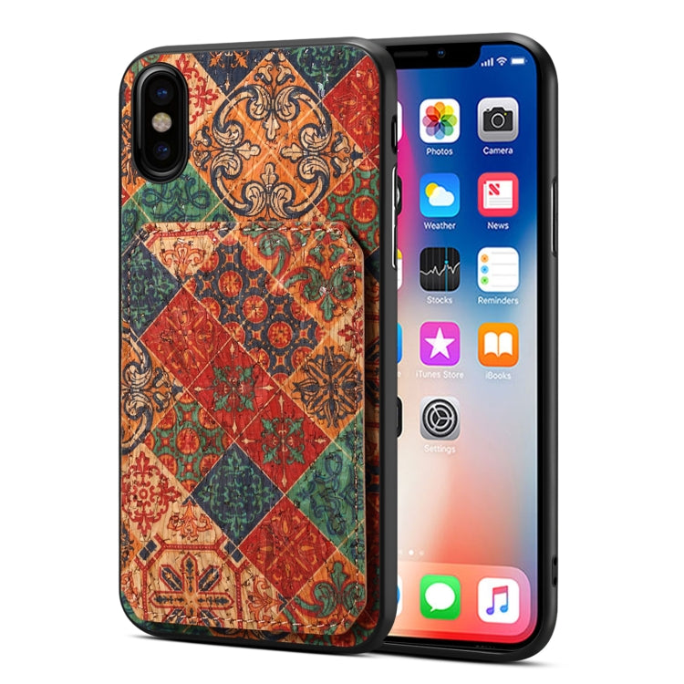 Funda de teléfono para iPhone X Xs con bolsa de tarjeta magnética de cuero retro (Rosa)