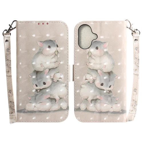 Pour iPhone 16 Étui de téléphone en cuir à rabat horizontal couleur 3D (écureuils)