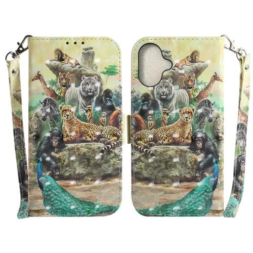 Pour iPhone 16 Étui de téléphone en cuir à rabat horizontal couleur 3D (Zoo)