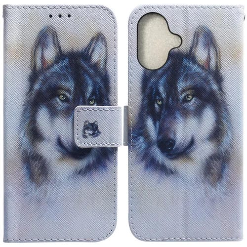 Pour iPhone 16/16 Plus Étui en cuir à rabat avec dessin coloré (Loup blanc)