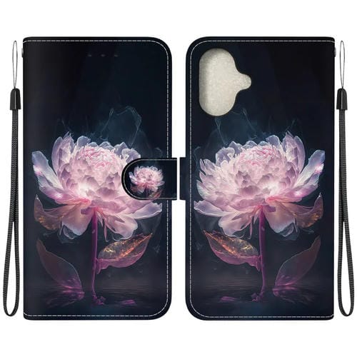 Pour iPhone 16 Étui en cuir à dessin coloré à texture cristalline (pivoine violette)