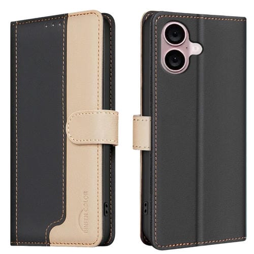 Funda de Teléfono iPhone 16 Cuero Antirrobo RFID a Juego de Colores (Negro)