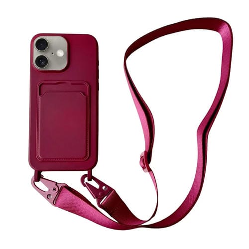 Funda de Silicona Líquida con Ranura para Tarjetas para iPhone 16 y Cordón (Rojo Vino)
