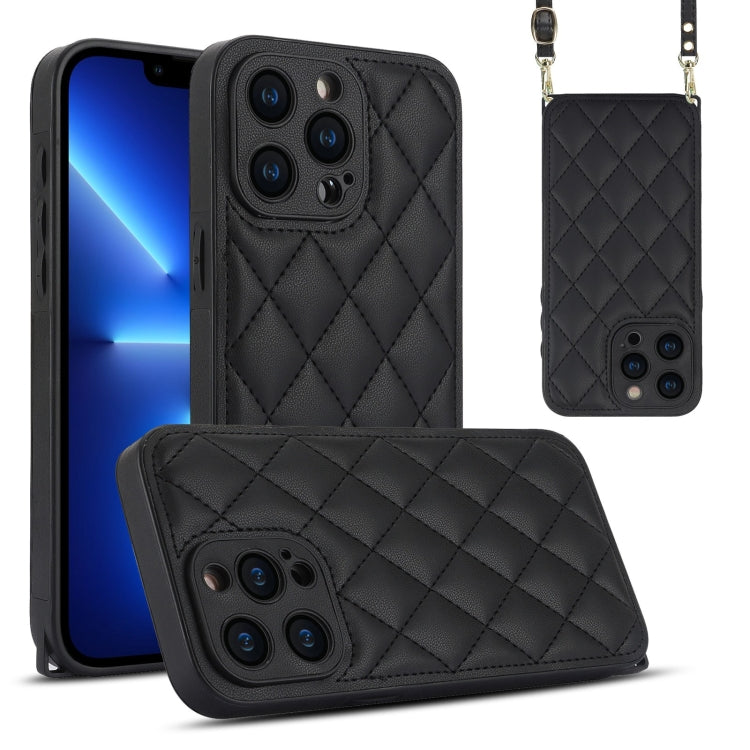 Estuche para Teléfono iPhone 13 Pro Textura Rómbica Cordón Doble (Negro)