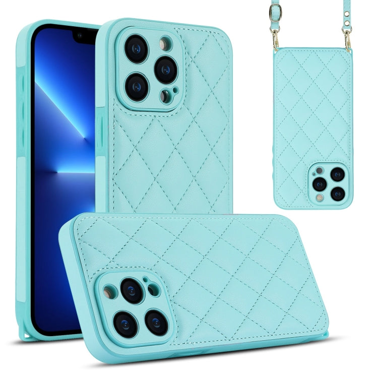 Estuche para Teléfono iPhone 13 Pro Textura Rómbica Cordón Doble (Verde)