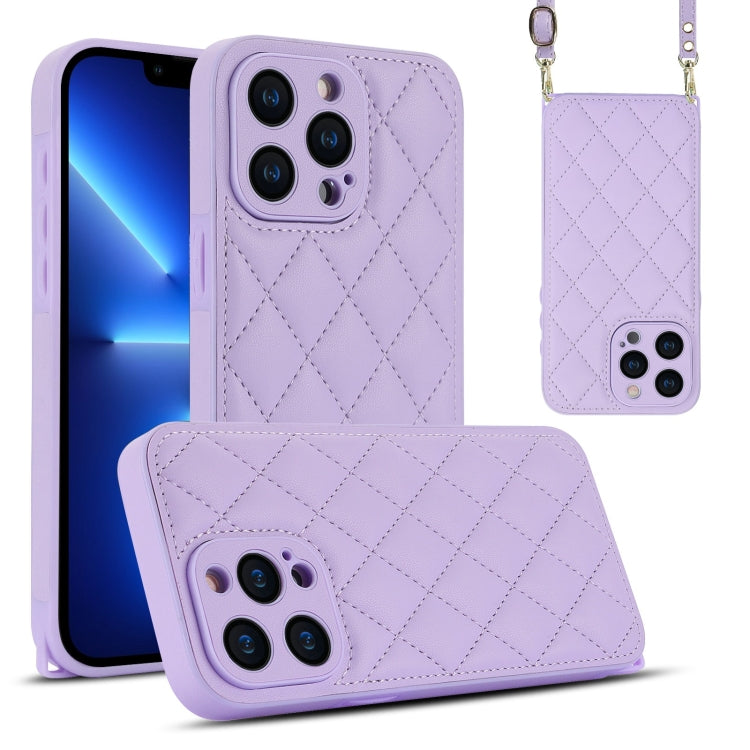 Estuche para Teléfono iPhone 13 Pro Textura Rómbica Cordón Doble (Púrpura)