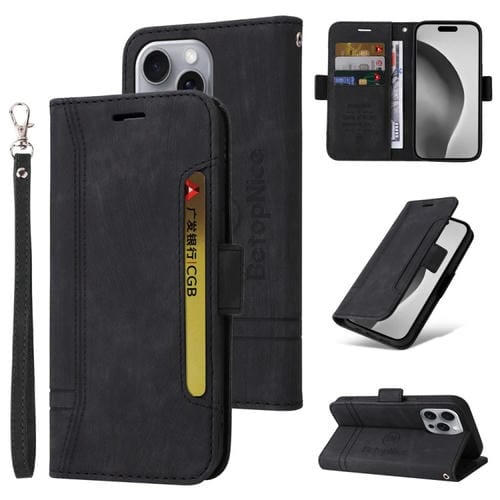 Funda para Teléfono Betopnice iPhone 16 Pro Max Cuero con Hebilla de Doble Cara (Negro)