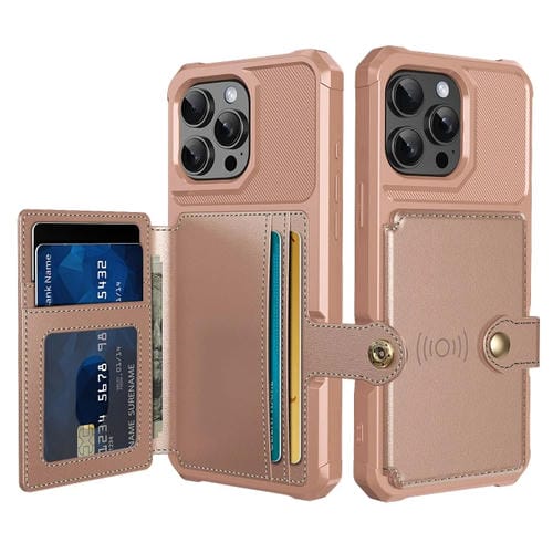 Funda de Cuero con Tarjetero y Billetera Magnética para iPhone 16 Pro Max (Oro Rosa)