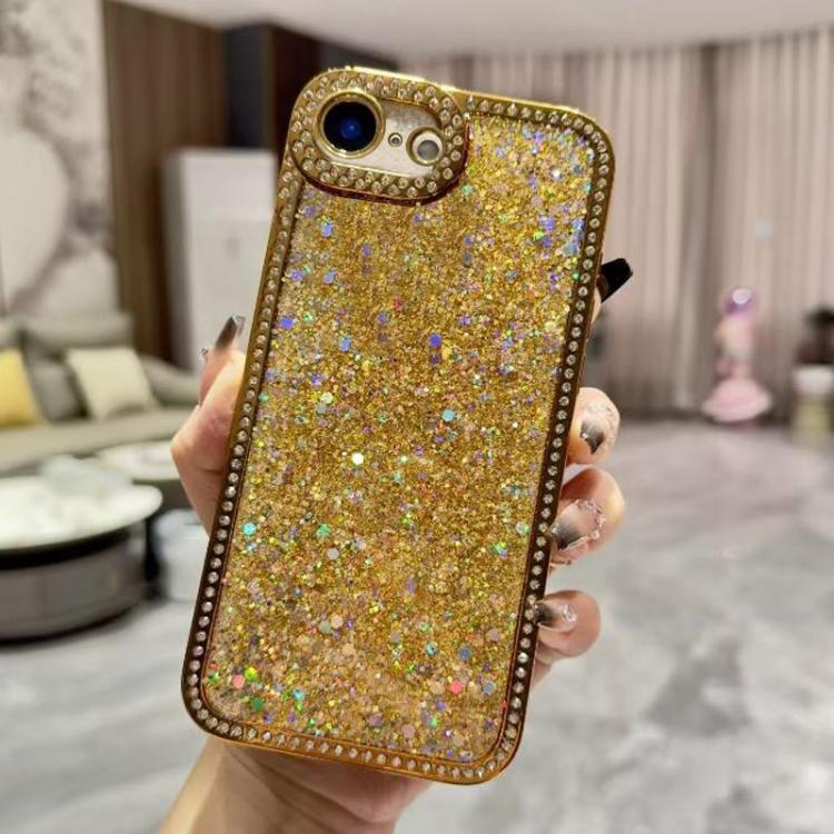 Funda de TPU con lentejuelas y diamantes brillantes para iPhone 16e (dorada)