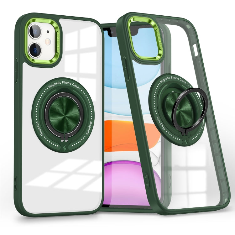 Funda para Teléfono iPhone 11 con Soporte de Anillo Giratorio Magnético (Verde Oscuro)