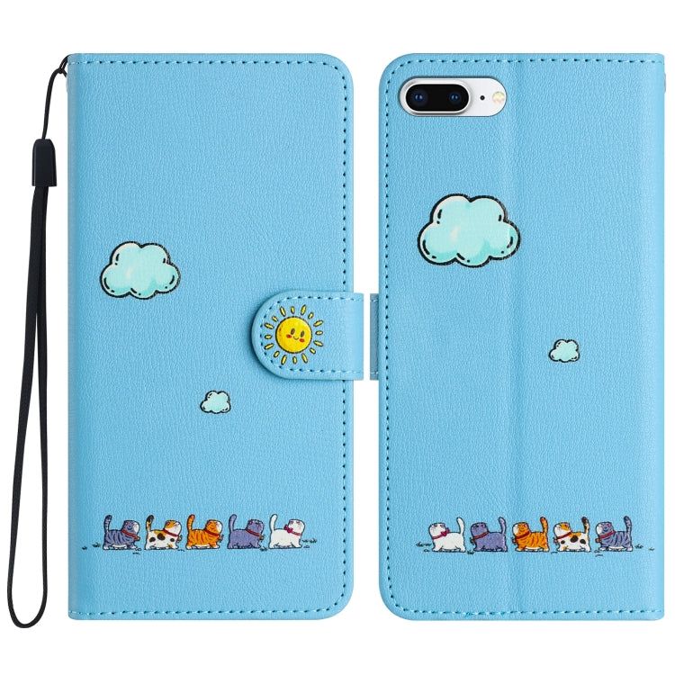 Funda para Teléfono iPhone 8 Plus/7 Plus Cuero Gatos Dibujos Animados (Azul)