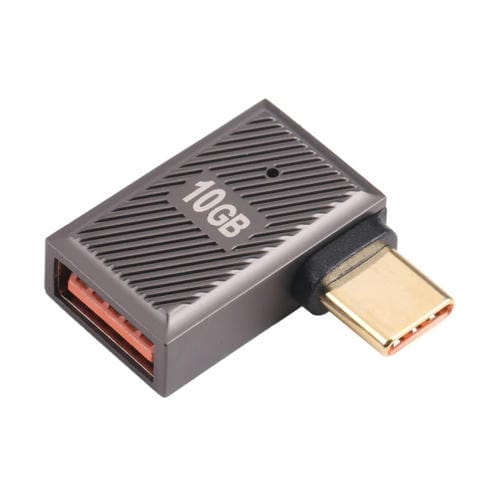 Adaptador de Carga USB-C Macho a USB Hembra 10 Gbps con Curvatura Lateral 90 Grados (Gun Metal)